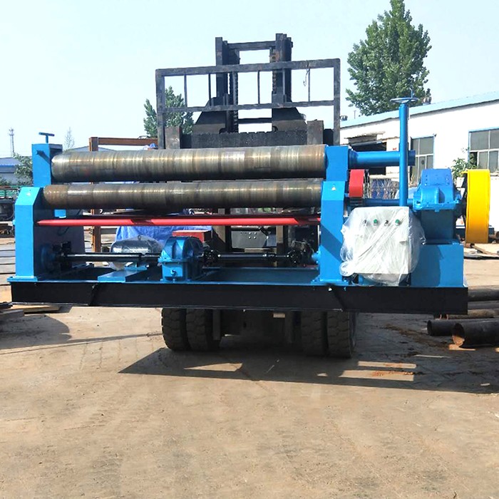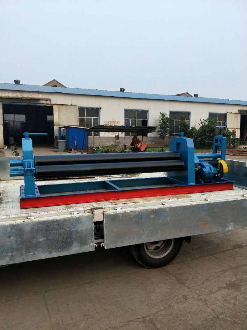 半自动草莓视频APP下载安装结构形式为三辊对称式。上辊在两下辊中间对称位置作垂直升降运动,通过丝杠实现上辊的升降,便使所卷制的材料变形,该草莓视频APP下载安装是用于金属板材型材弯曲、变型的一种通用设备,它借助于专用工具或其它设备来完成板材端面的预弯,可以卷制圆形、弧形工件,在石油、化工、锅炉、水电、造船、工业设备安装以及机械制造行业中有着广泛的应用。该机器采用倒顺开关(已安装在草莓视频APP下载安装上)来实现卷板的正、反转,检查机器无误后,调节丝杠让上辊压至板材表面,把倒顺开关打到“倒”“顺”视现场板材的放入端而定让电动机正转还是把反转,卷制一边后,手动调节丝杠让上辊压紧板材在“倒”“顺”卷制,如此循环直至达至要求为止。